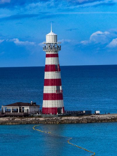 At the center of the island stands the iconic Ocean Cay Lighthouse, which overlooks Lighthouse Bay.